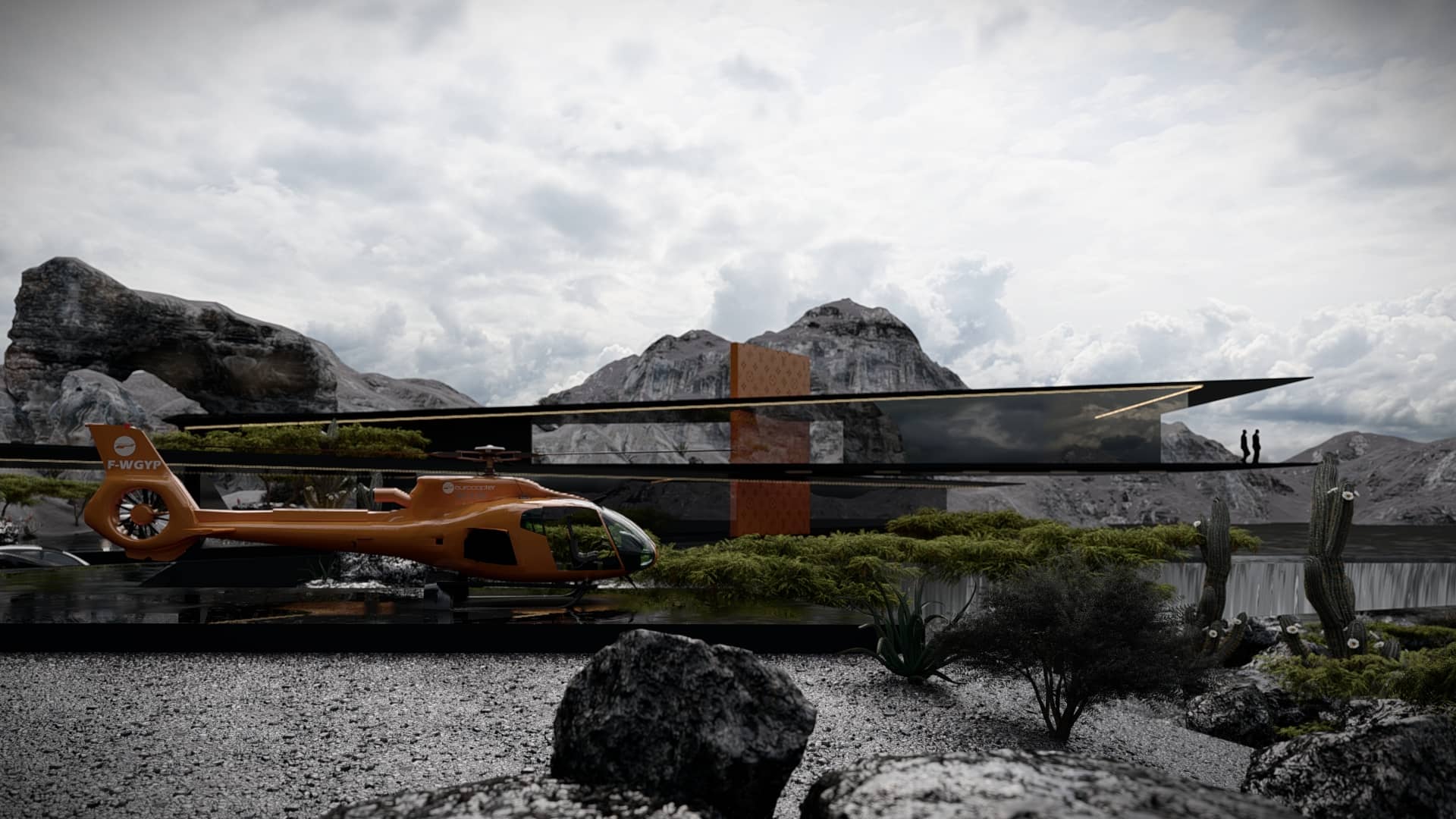A refined selection of natural and industrial materials defines the architectural language of L House. The concrete floors create a seamless, minimalistic foundation that runs throughout the interior and exterior spaces. Vertical wooden slats add warmth and rhythm, softening the strict geometry and enhancing privacy without compromising light. Black aluminum is used in the roof and window framing, offering a durable, sleek contrast to the earthy palette. Black stucco completes the composition, grounding the structure in bold elegance while emphasizing its clean lines and sculptural presence.