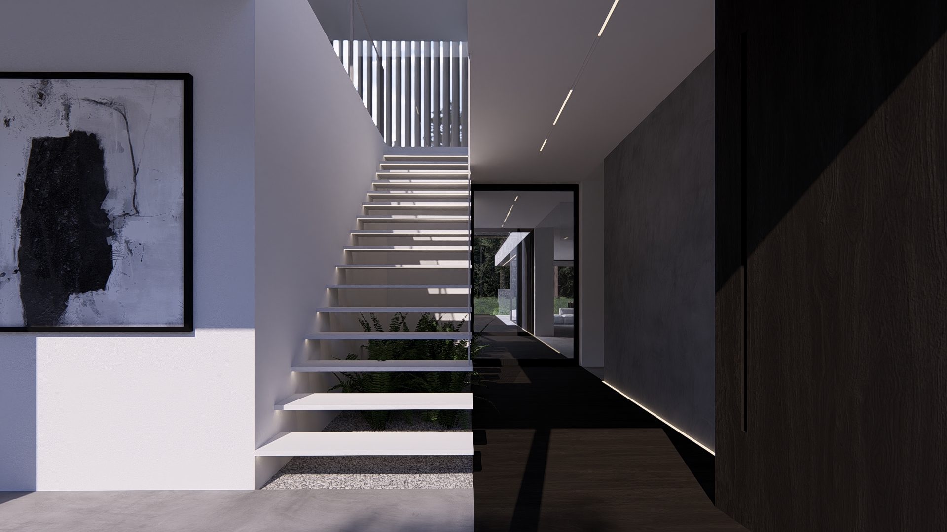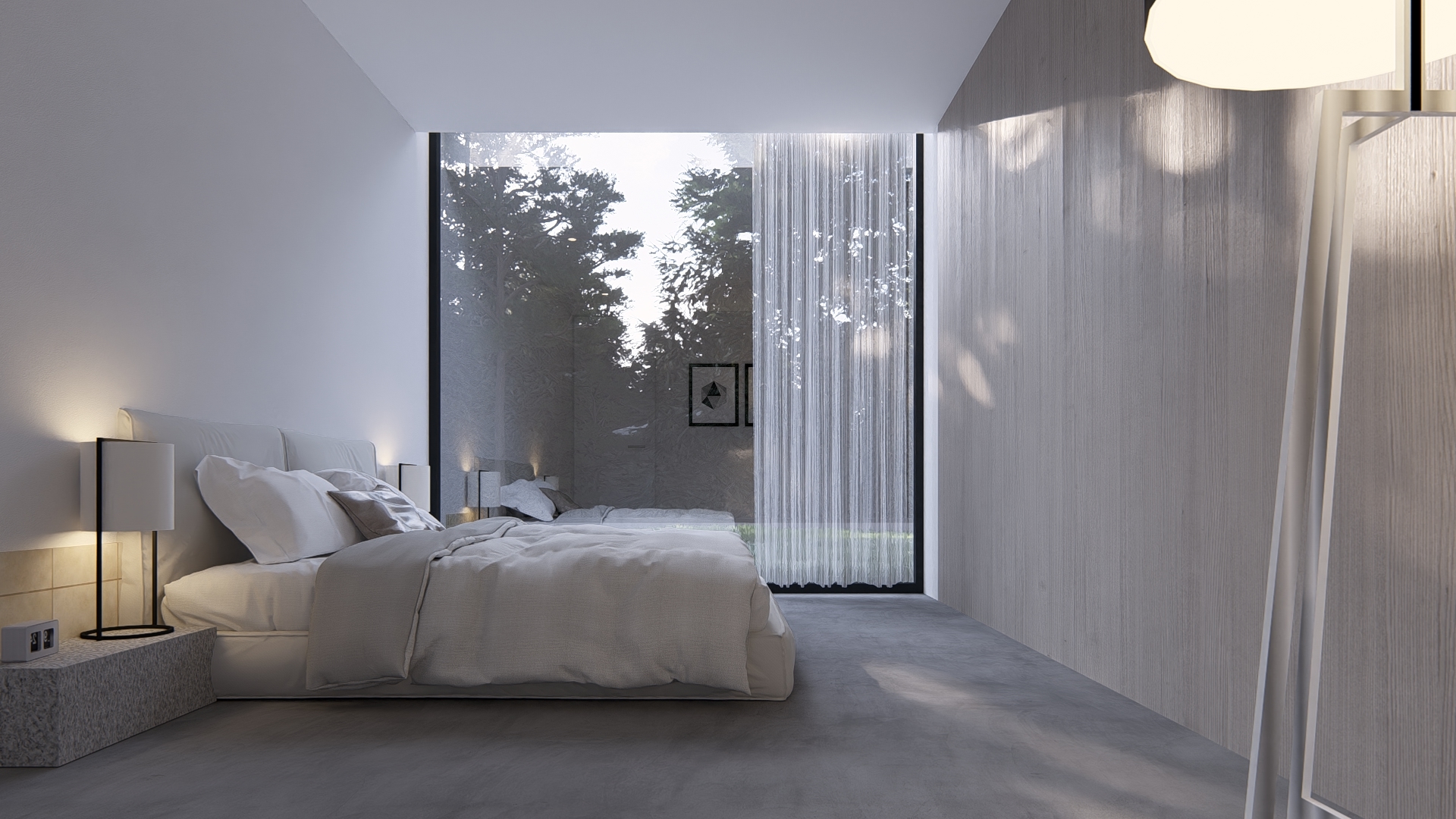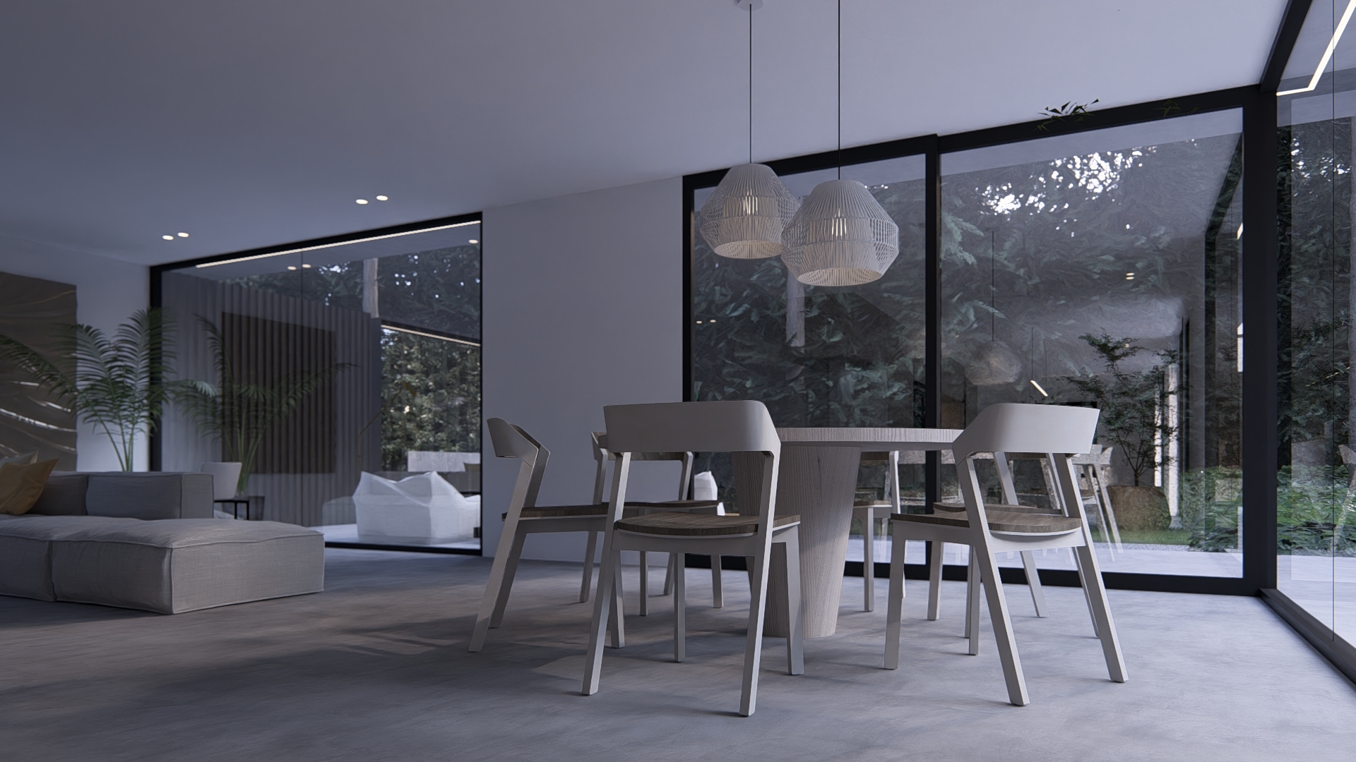 A minimalist interior where nature enters and give life to the indoor spaces. The natural light strikes every room and connects exterior and interior.