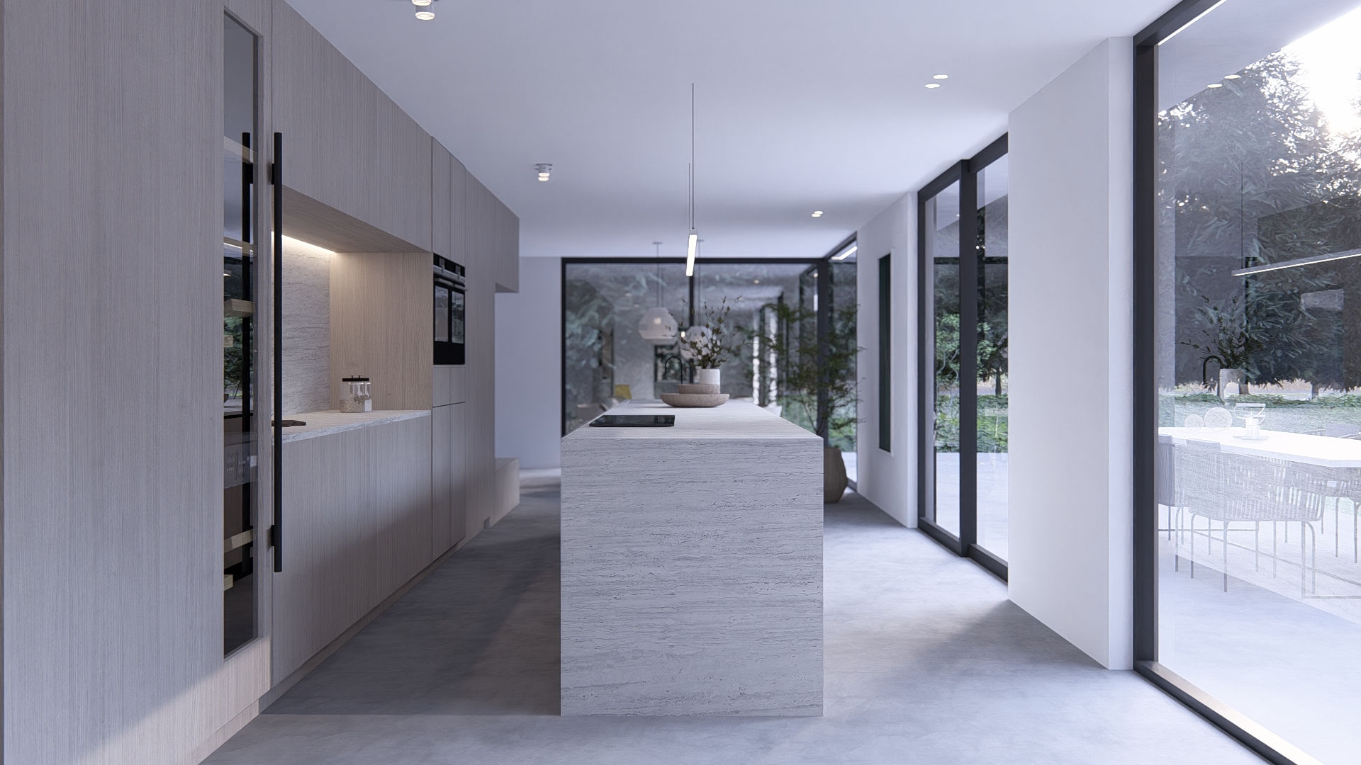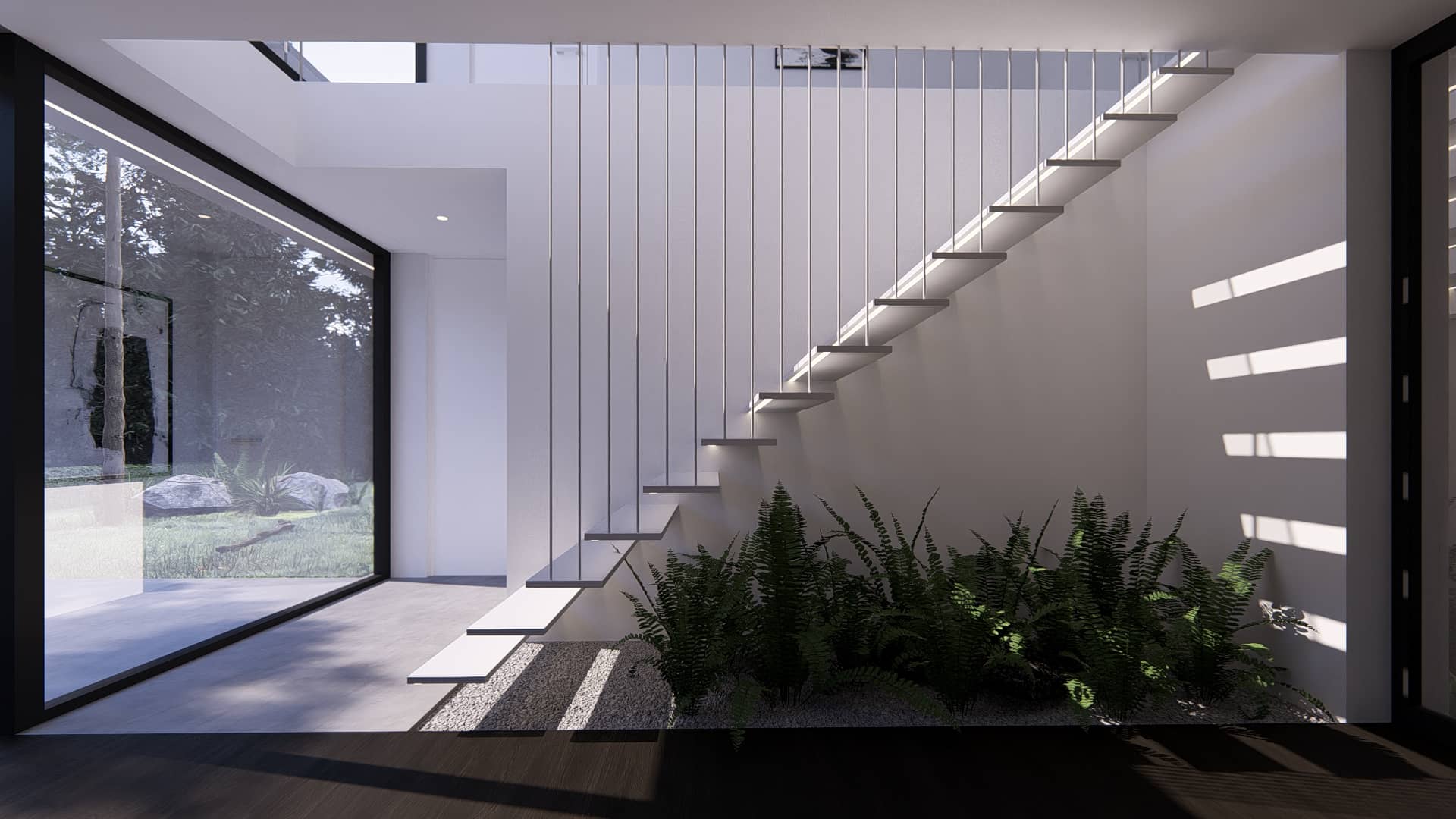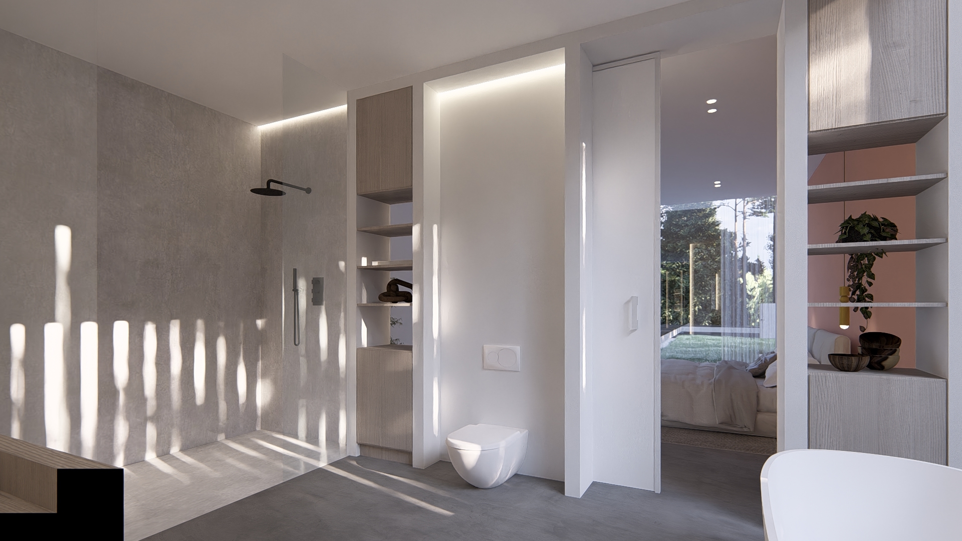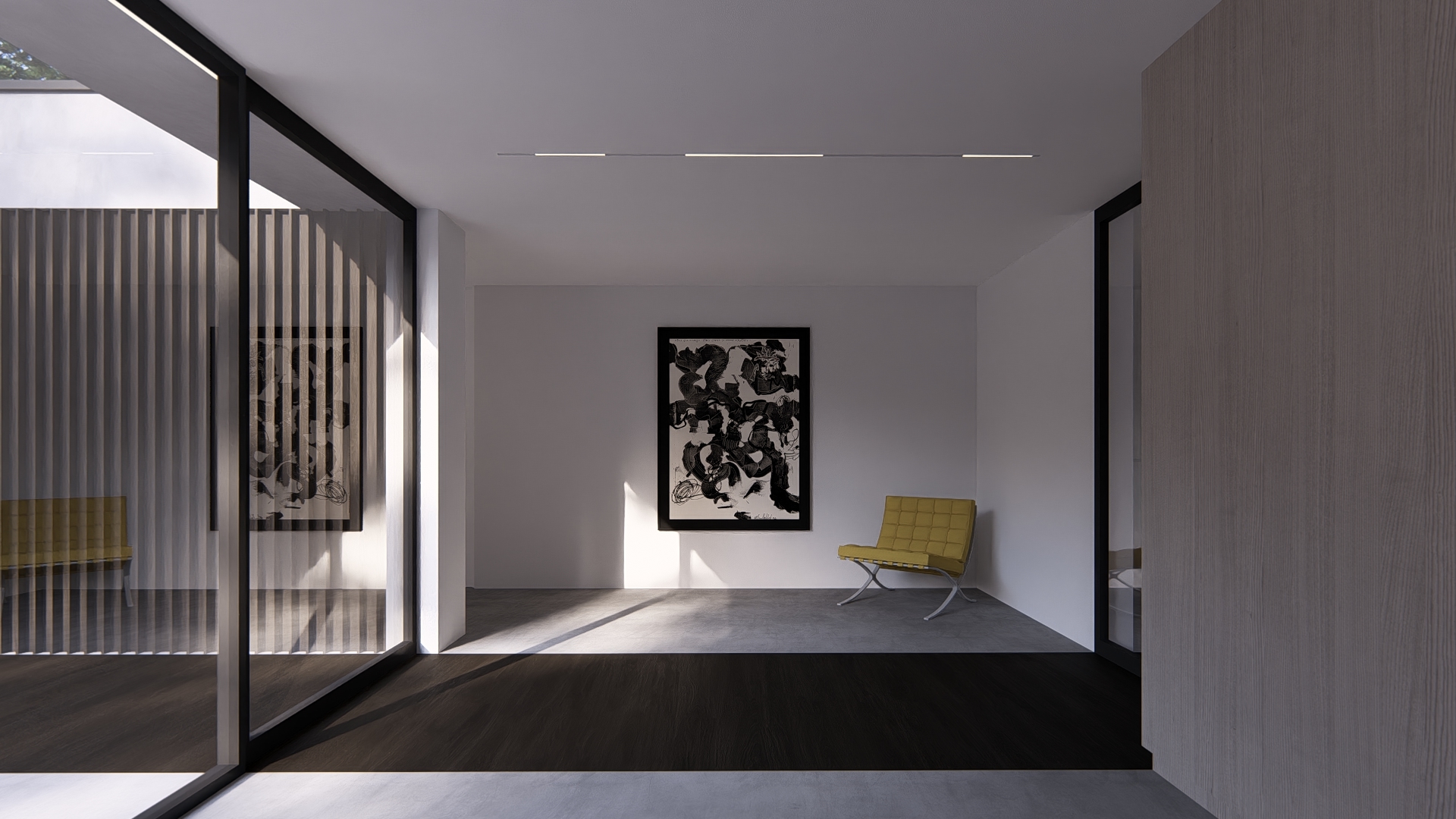 A minimalist interior where nature enters and give life to the indoor spaces. The natural light strikes every room and connects exterior and interior.