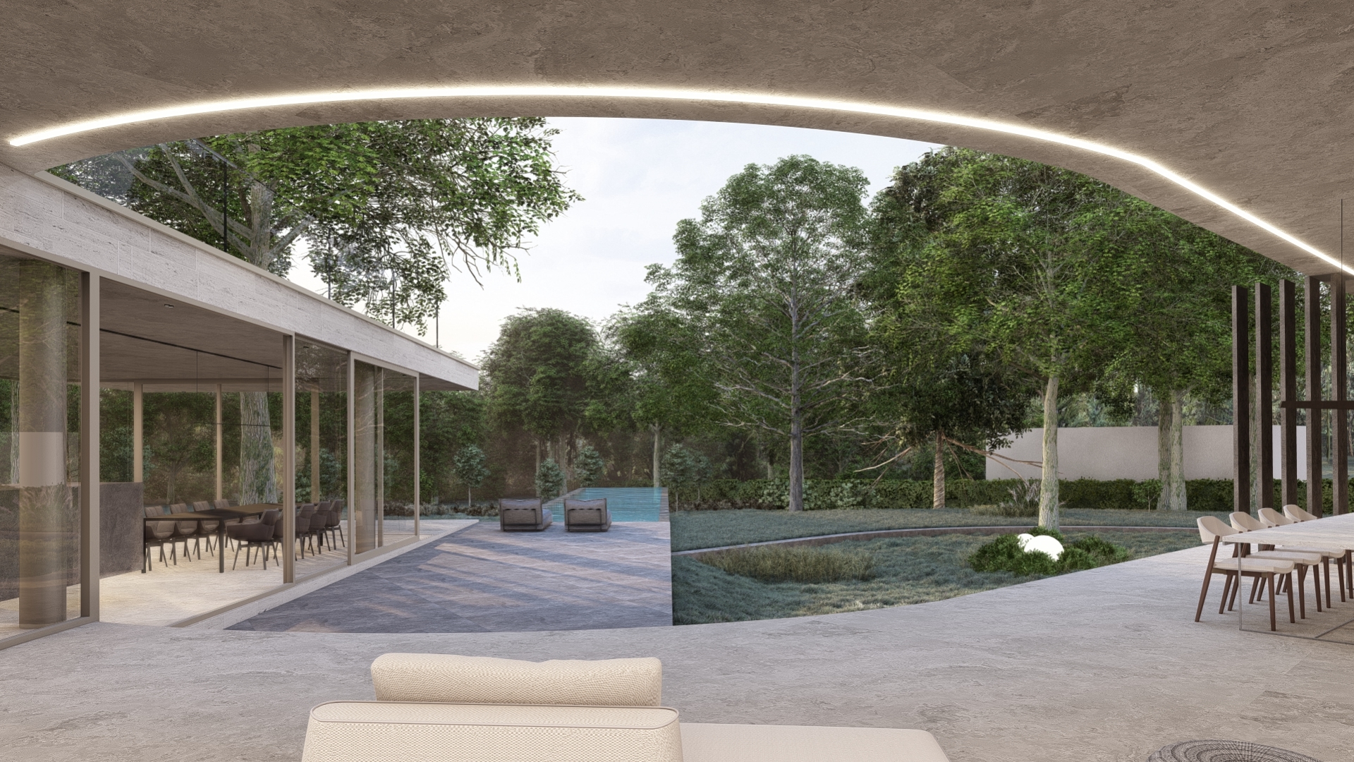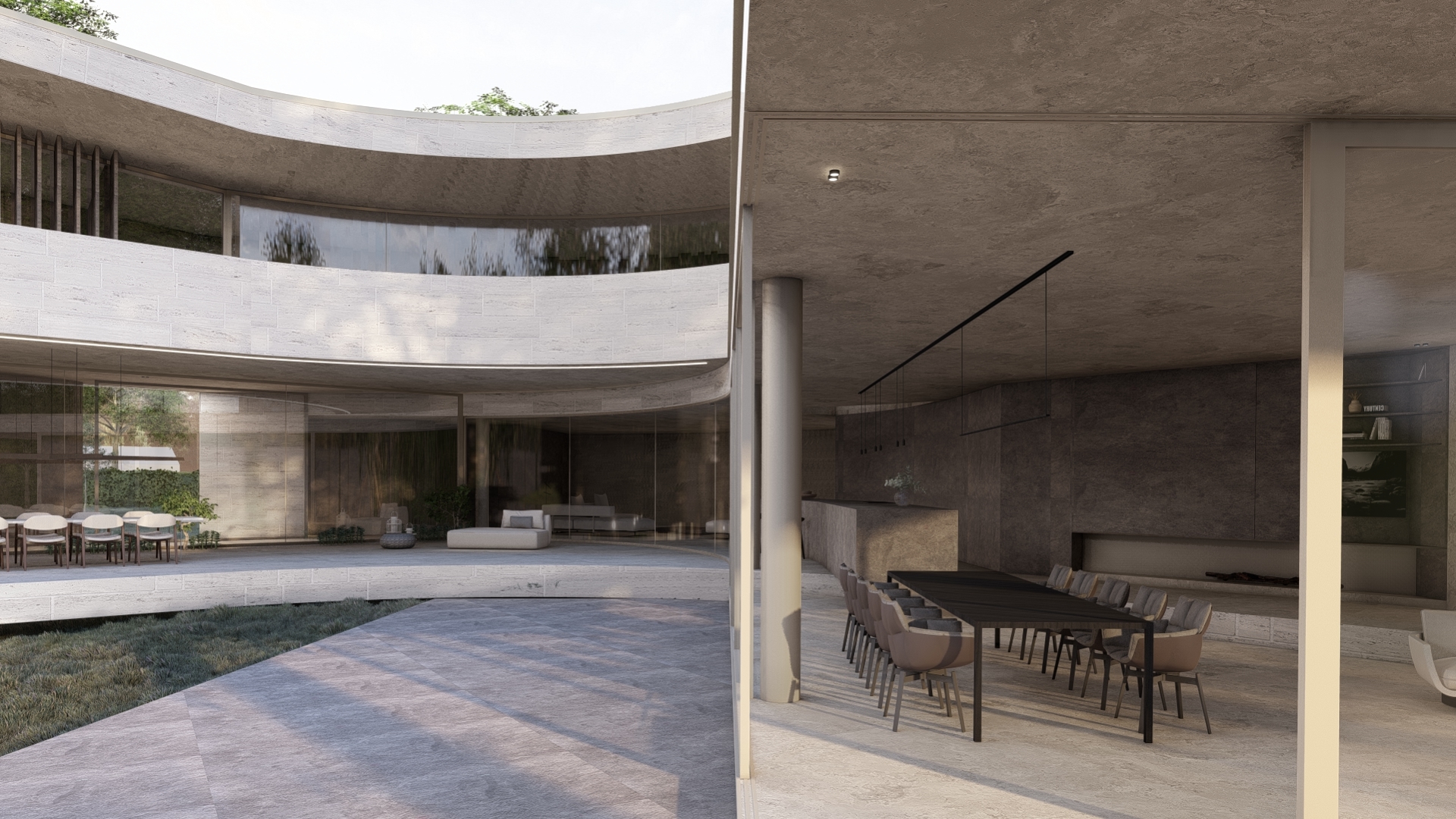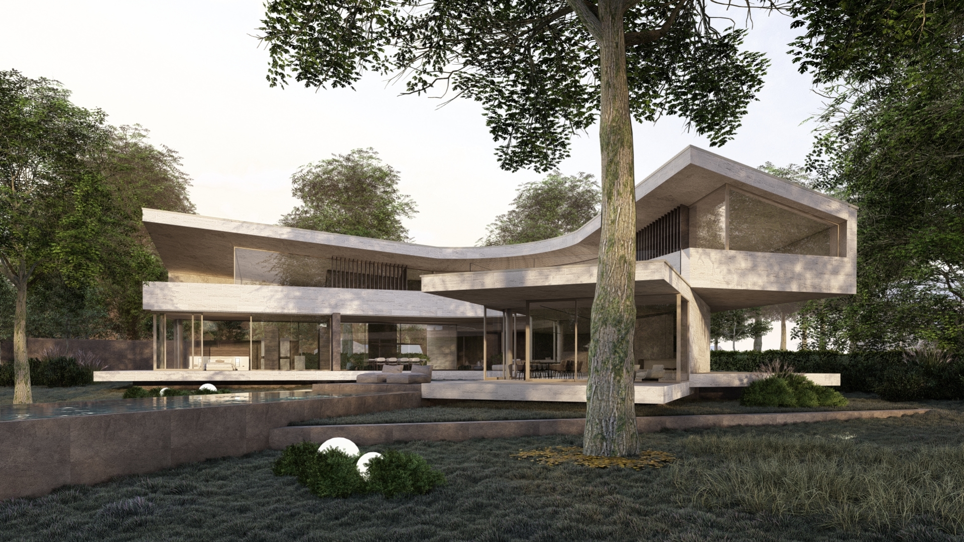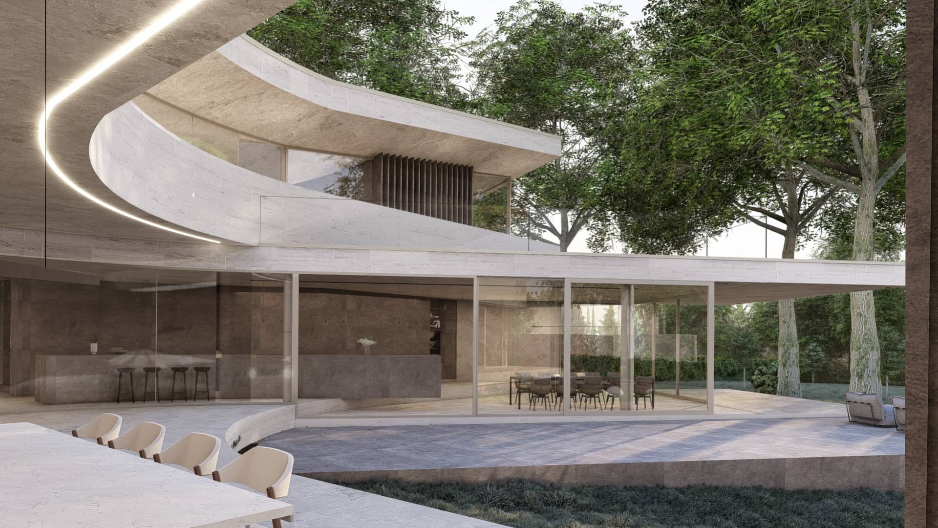 Sinoucity HouseSinuosity House is a sculptural villa where form follows light and movement. Set amidst a lush, natural setting, the residence is shaped by a central axis that defines both orientation and experience. With elegant curves and carefully composed volumes, the architecture creates a spatial dialogue between inside and outside, privacy and openness.