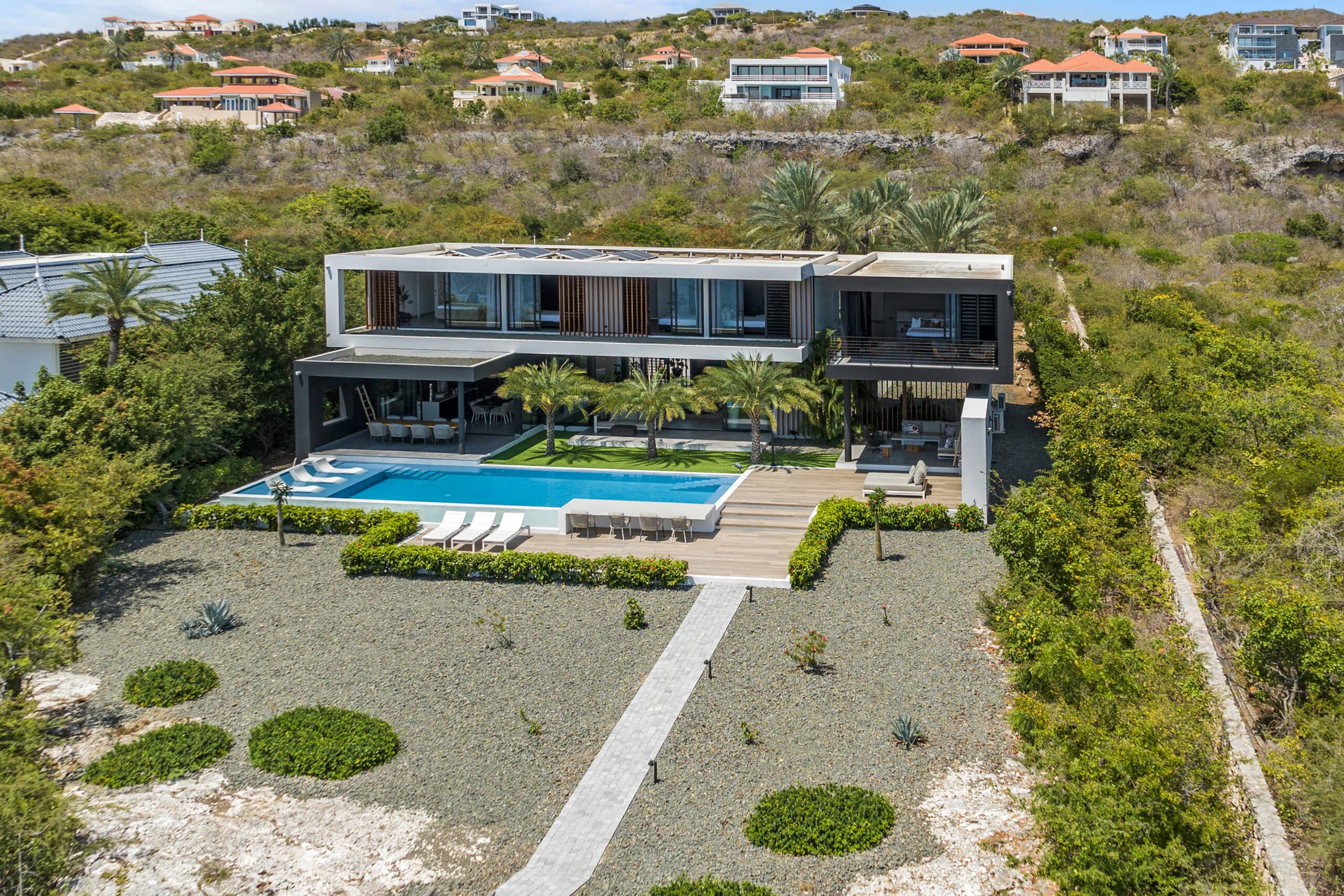 Raw materials, bold architecture, and an exclusive character—this defines Villa Boca. Located in the prestigious Spanish Water region, this villa seamlessly blends into the untouched beauty of the Caribbean nature and the island’s rugged landscape.