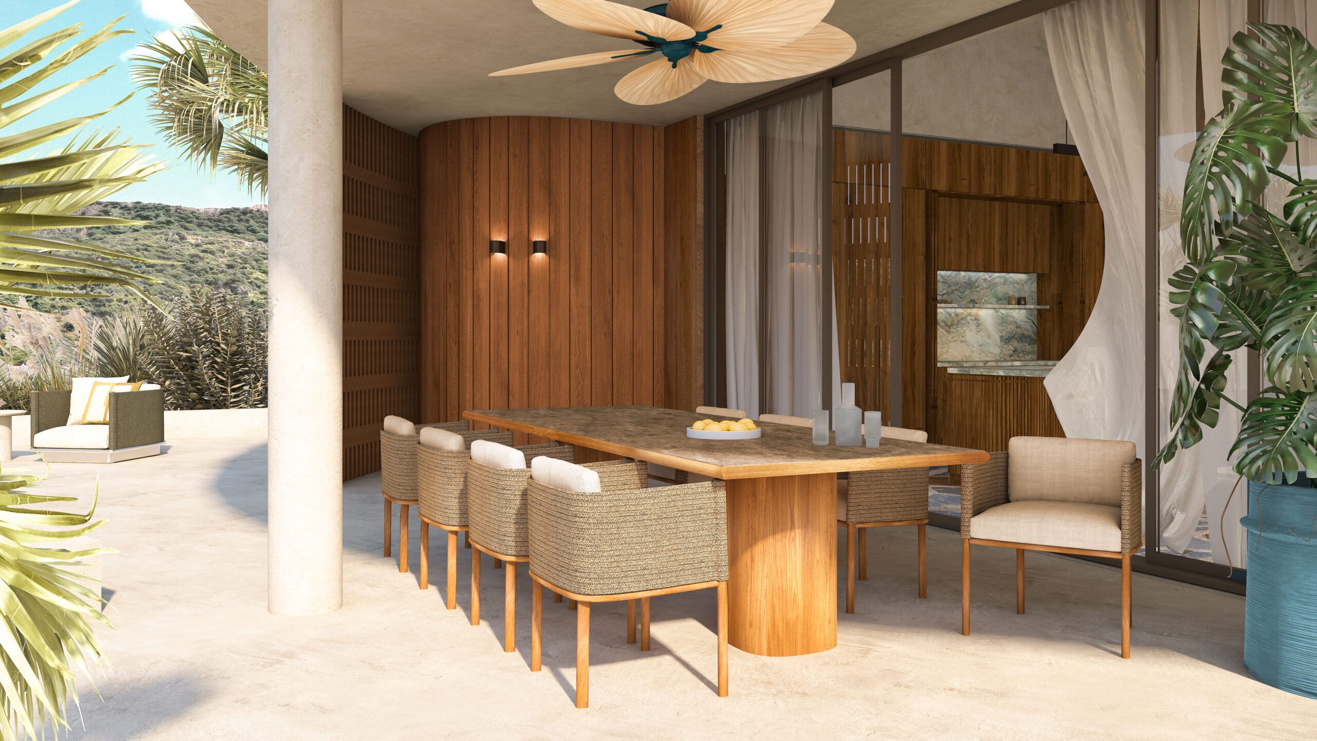 The large doors and expansive glass openings enhance the spaciousness of the villa’s indoor and outdoor living areas, effortlessly connecting the architecture to the breathtaking views of the surrounding landscape. Villa Boca is a celebration of natural materials in harmony with bold design.